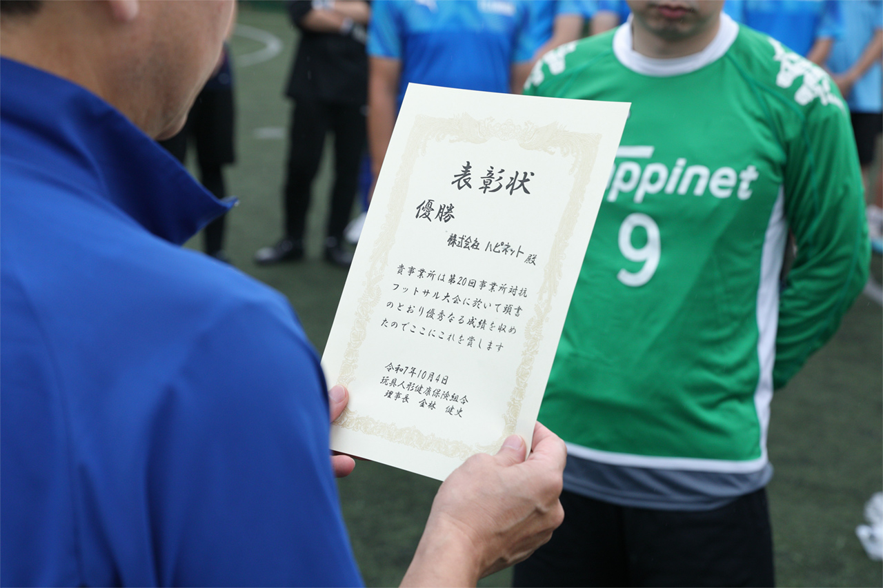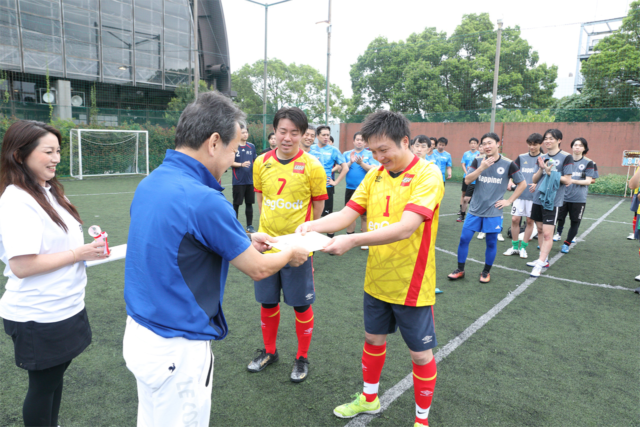 第20回事業所対抗フットサル大会を開催しました。今大会は8チームにご参加をいただき、決勝戦では株式会社ハピネットとレゴジャパン株式会社が対戦しました。株式会社ハピネットが昨年に続き優勝、コロナ禍で中止を挟んで見事4連覇を達成しました。