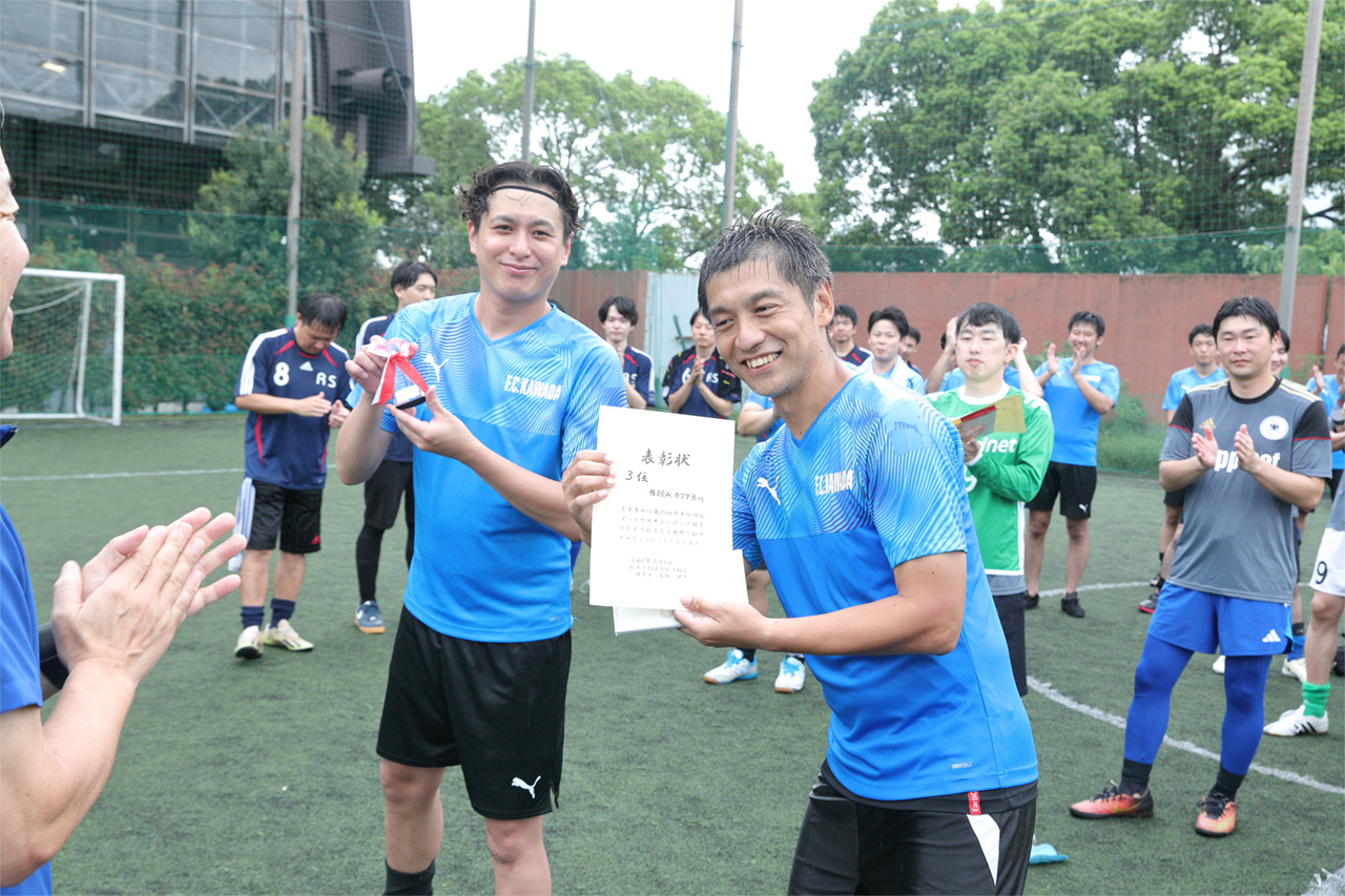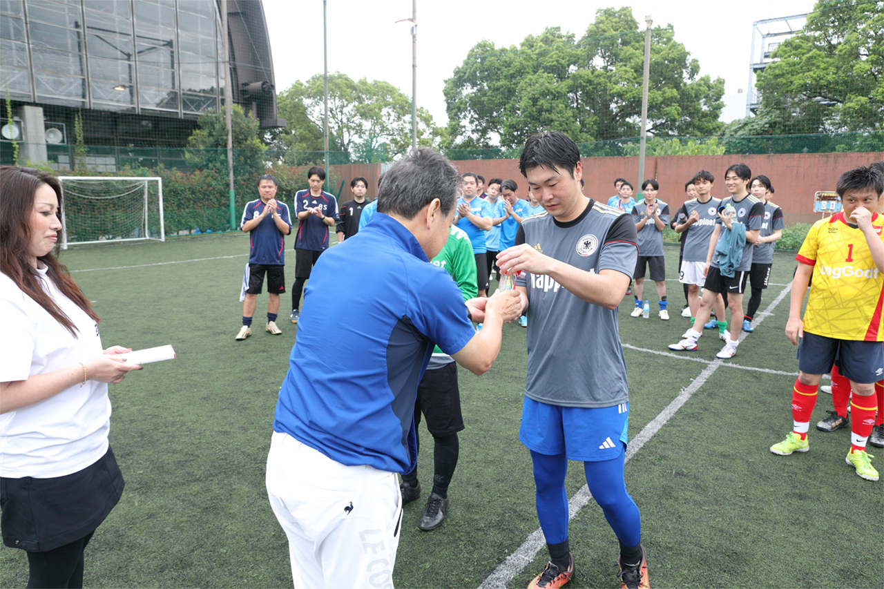優勝できてよかったです。チームのみんなでわいわい楽しくフットサルができて、その結果勝てたのがよかったです。試合数が多かったですが、若いメンバーが多かったのもあり、何とか乗り切ることができたのだと思います。準決勝ではカワダBチームとPKまで戦って、勝ちました。次の大会で連覇できるようがんばりたいです。